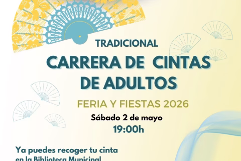 Carrera de cintas infantil para niños y niñas de 7 a 12 años. Hay 100 plazas disponibles. Las cintas se pueden recoger ya en la Biblioteca Municipal y decorar en casa.
