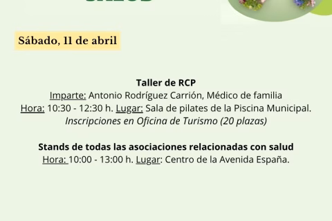 Taller de RCP. Imparte: Antonio Rodríguez Carrión, Médico de familia. Inscripciones en Oficina de Turismo (20 plazas).