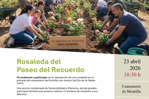 El Ayuntamiento de Montilla te invita a participar en la plantación de esta rosaleda en la entrada del cementerio, una iniciativa con motivo del Día de la Madre Tierra. Una acción simbólica para rendir homenaje a nuestros seres queridos y compartir un momento en comunidad.