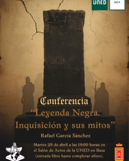 Adéntrate en uno de los debates históricos más apasionantes y controvertidos con la conferencia "Leyenda Negra. Inquisición y sus mitos", que tendrá lugar en Baza. Este martes, 28 de abril de 2026, a partir de las siete de la tarde, el Salón de Actos de la UNED de Baza abrirá sus puertas para acoger a Rafael García Sánchez, quien desgranará los entresijos de este periodo crucial de la historia española. La charla promete ofrecer una perspectiva profunda y crítica sobre la Inquisición y los mitos que la rodean, invitando a la reflexión y al análisis de los hechos históricos más allá de las narrativas preconcebidas.