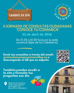 Los ciudadanos de la Comarca de las Cinco Villas tienen una cita importante para hacer oír su voz. El próximo 22 de abril de 2026, la sede comarcal en Ejea de los Caballeros acogerá la II Jornada de Consultas Ciudadanas ‘Conoce tu Comarca’. Este encuentro, que se desarrollará de 12:00 a 14:00 horas, es una oportunidad excelente para todos aquellos vecinos que deseen plantear dudas, proponer mejoras o compartir ideas para el desarrollo de su región. La iniciativa busca fomentar la participación activa y constructiva, creando un espacio donde las inquietudes de la ciudadanía sean escuchadas directamente por las autoridades comarcales.