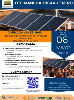 Castilla-La Mancha. Además, se tratarán aspectos fundamentales como la instalación, gestión y financiación de proyectos, incluyendo la parte no subvencionada. Contará con la participación de expertos del sector energético, consultores especializados y entidades relevantes como ADI Mancha Júcar-Centro, ESCAN, Reglado consultores y abogados, y Grupo ENERCOOP. Esta jornada es una excelente oportunidad para adquirir conocimientos prácticos y conectar con profesionales del sector, impulsando así el desarrollo de un futuro energético más verde en la región.