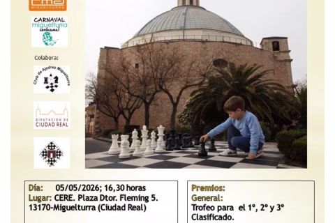 Sistema de Juego: Suizo 5 Rondas a 10 minutos + 3 Seg. Inscripción: Gratuita. Jugadores Locales de Miguelturra Oficina Concejalía. Premios: General: Trofeo para el 1º, 2º y 3º Clasificado. Sub16: Trofeo para el 1º, 2º y 3º Clasificado. Sub12: Trofeo para el 1º, 2º y 3º Clasificado. Medallas para todos los participantes Sub12.