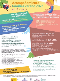 El Ayuntamiento de Alovera, en la provincia de Guadalajara, ha anunciado la apertura del plazo de solicitud para su programa de acompañamiento familiar durante el verano de 2026. Esta iniciativa, diseñada para apoyar a las familias empadronadas en la localidad que enfrentan desafíos de conciliación laboral y familiar, ofrece un servicio gratuito de cuidado y actividades para menores. El programa está dirigido a niños y niñas de 3 a 12 años, que cursen desde 1º de infantil hasta 6º de primaria, proporcionando un entorno seguro y enriquecedor durante los meses estivales. Las actividades principales se desarrollarán del 18 de junio al 4 de septiembre de 2026, con un horario central de 9:00 a 14:00 horas. Además, se ofrecen servicios de acogida matinal, de 7:00 a 9:00 horas, donde las familias deberán llevar el desayuno, y acogida de tarde, de 14:00 a 16:00 horas, que incluirá un servicio de catering con coste adicional. Se han dispuesto 255 plazas semanales para la actividad principal y 90 plazas para cada acogida, garantizando una atención adecuada. El plazo para presentar las solicitudes es del 4 al 22 de mayo de 2026. Los interesados pueden realizar el trámite en el Centro Joven de Alovera, a través de correo electrónico (ociojoven@aytoalovera.es) o mediante la sede electrónica municipal. Se priorizará a familias con menor nivel de renta, víctimas de violencia de género, monoparentales, personas con discapacidad o en riesgo de exclusión social. Esta es una excelente oportunidad para las familias de