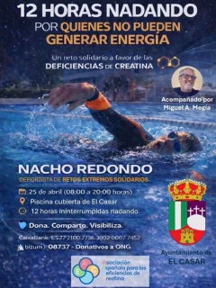 El municipio de El Casar se prepara para acoger una jornada de compromiso y superación con un reto solidario sin precedentes. El próximo 25 de abril de 2026, la piscina cubierta de la localidad será el escenario de un desafío impresionante: el deportista de retos extremos Nacho Redondo se sumergirá para nadar durante 12 horas ininterrumpidas, desde las 08:00 hasta las 20:00 horas. Esta iniciativa tiene un propósito fundamental: dar visibilidad y recaudar fondos para las personas que padecen deficiencia de creatina, una enfermedad rara que impacta significativamente en el desarrollo cerebral, pudiendo causar discapacidad intelectual, problemas de lenguaje y epilepsia.