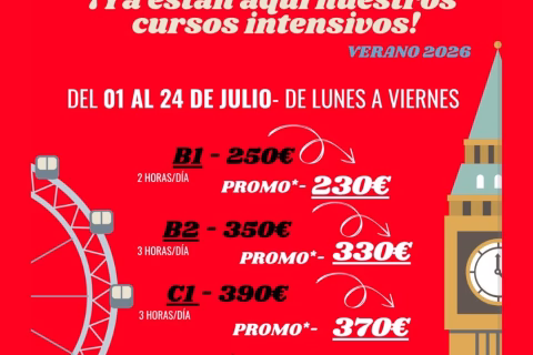 La Escuela Municipal de Idiomas de Torija ofrece cursos intensivos de inglés para obtener la certificación oficial de Cambridge. Los cursos se desarrollarán del 1 al 24 de julio de 2026, de lunes a viernes. Los niveles B1, B2 y C1 tienen diferentes cargas lectivas y precios, con una promoción válida hasta el 31 de mayo. Las plazas son limitadas.