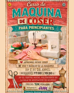 El Ayuntamiento de Yunquera de Henares, en la provincia de Guadalajara, ha organizado un interesante curso de iniciación a la máquina de coser, perfecto para quienes deseen adentrarse en el mundo de la costura. Esta actividad formativa está diseñada para principiantes, ofreciendo la oportunidad de aprender desde cero y familiarizarse con el uso y manejo básico de una máquina de coser. Los participantes adquirirán los conocimientos esenciales para empezar a crear sus propias labores y proyectos textiles.