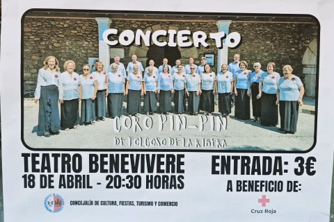Concierto del Coro Pin Pin en Teatro Benevivere. 18/04/2026. Entrada 3€ a beneficio de Cruz Roja.