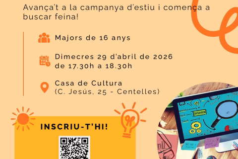 Sessió informativa per a joves (majors de 16 anys) per buscar feina a l'estiu. Dimecres 29 d'abril a la Casa de Cultura.