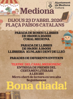 Puestos de diversas entidades locales que participarán en la celebración de Sant Jordi.