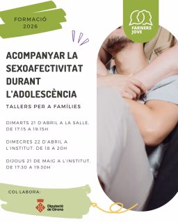 Sesión del taller dirigido a familias sobre cómo acompañar a los adolescentes en el ámbito de la sexoafectividad, una etapa vital en la construcción de las relaciones, la identidad y de cambios. Impartido por profesionales de Mandràgores, con el apoyo de la Diputación de Girona.