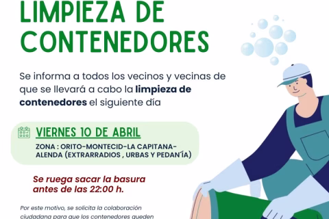 Limpieza de contenedores en Orito, Montecid, La Capitana y Alenda. Sacar la basura antes de las 22:00h.