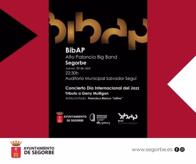 La agenda cultural de Segorbe se prepara para una noche inolvidable con la música como protagonista. El próximo jueves 30 de abril, el Auditorio Municipal Salvador Seguí abrirá sus puertas para acoger un evento muy especial: el Concierto del Día Internacional del Jazz. La aclamada BibAP Alto Palancia Big Band regresa a los escenarios de la localidad para ofrecer una actuación que promete cautivar a todos los asistentes. En esta ocasión, la banda rendirá un emotivo tributo al legendario Gerry Mulligan, una figura icónica del jazz, garantizando una velada llena de ritmo y melodías envolventes. Además, el concierto contará con la participación estelar de Francisco Blanco "Latino" como artista invitado, añadiendo un toque distintivo y una calidad musical excepcional a la propuesta. Este evento es una oportunidad fantástica para disfrutar de la buena música en un ambiente único y, lo mejor de todo, la entrada es completamente gratuita hasta completar el aforo. No pierdas la ocasión de sumergirte en el universo del jazz y vivir una experiencia cultural de primer nivel en la capital del Alto Palancia. Segorbe, en la provincia de