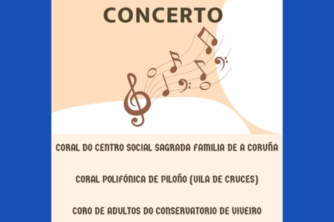Concerto de corais coa participación da Coral do Centro Social Sagrada Familia (A Coruña), a Coral Polifónica de Piloño (Vila de Cruces) e o Coro de Adultos do Conservatorio de Viveiro. Organizado pola Asociación de Adultos "Melomanía" e o Conservatorio Profesional de Música de Viveiro, coa colaboración do Concello.