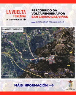 San Cibrao das Viñas con la llegada de una etapa de A Volta Ciclista Feminina. Este importante evento deportivo, que atrae a ciclistas de élite, recorrerá varios núcleos del municipio ourensano, ofreciendo un espectáculo único para los aficionados y vecinos. La jornada comenzará con el cierre del recorrido a partir de las 15:00 horas, afectando a la circulación en las zonas por donde transcurrirá la carrera.