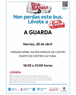 La solidaridad vuelve a ser protagonista en A Guarda con la llegada de la unidad móvil de la Axencia de Doazón de Órganos e Sangue (ADOS). Este martes, 28 de abril de 2026, los vecinos tendrán la oportunidad de contribuir a una causa vital, ya que las reservas de sangre en grupos como A+, 0- y 0+ se encuentran en niveles bajos. La cita es en la céntrica Rúa Rosalía de Castro, justo frente al Centro Cultural, en un horario de tarde que facilita la participación: desde las 16:30 hasta las 21:00 horas.