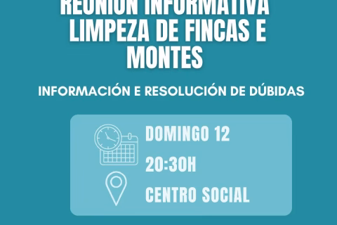 Reunión informativa abierta a toda la vecindanza para aclarar dudas e informar sobre la medida impulsada por la Xunta de Galicia para la prevención de incendios forestales, relacionada con la limpieza de fincas y montes. La reunión se celebrará después de una actuación de teatro.