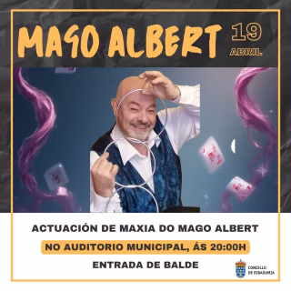 La magia inunda hoy el Auditorio Municipal de Ribadumia con la esperada actuación del Mago Albert, un evento diseñado para cautivar a públicos de todas las edades. Este espectáculo, que promete ilusionar tanto a los más pequeños como a los adultos, se presenta como una oportunidad fantástica para disfrutar de una tarde diferente y llena de sorpresas. El Concello de Ribadumia, en la provincia de