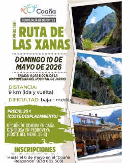 El próximo 10 de mayo de 2026, los amantes de la naturaleza y el senderismo tienen una cita ineludible con la Ruta de las Xanas, una de las joyas paisajísticas del Principado de Asturias. Organizada por la Concejalía de Deportes del Ayuntamiento de Coaña, esta actividad promete una jornada inolvidable explorando los impresionantes parajes asturianos. La salida está programada para las 8:00 de la mañana desde la Marquesina del Hospital de Jarrio, en Coaña, desde donde los participantes se dirigirán hacia este emblemático recorrido. Con una distancia total de 9 kilómetros (ida y vuelta) y un nivel de dificultad catalogado como bajo/medio, la ruta es accesible para un amplio público, permitiendo disfrutar de sus gargantas y paisajes sin excesivas exigencias físicas. El coste de la actividad es de 20 euros, que cubre el desplazamiento. Además, para quienes deseen completar la experiencia, se ofrece una opción de comida en Casa Generosa, ubicada en Pedroveyá, por un coste adicional de 25 euros. Las inscripciones para esta emocionante aventura están abiertas hasta el 6 de mayo y pueden realizarse a través del servicio 'Coaña Responde' en el número 638 602 303. No pierdas la oportunidad de descubrir los