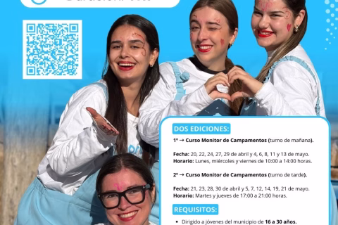 Curso Monitor de Campamentos (turno de mañana). Fechas: 20-29 abril y 4-13 mayo. Lunes, miércoles y viernes de 10:00 a 14:00h.