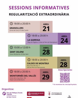 El Consell Comarcal del Vallès Oriental ha puesto en marcha un ciclo de sesiones informativas cruciales para la comunidad, centradas en la regularización extraordinaria de personas migrantes. Estas charlas, diseñadas para ofrecer orientación y resolver dudas, se extenderán por varias localidades de la comarca a lo largo de los próximos días de abril. La primera de estas importantes citas tendrá lugar hoy mismo, martes 21 de abril de 2026, en Granollers, de 18:00 a 20:00 horas, en la Sala Tarafa (Carrer de Corró, 47). Posteriormente, el viernes 24 de abril, la sesión se trasladará a La Garriga, en la Plaça de l'Església, 2, manteniendo el mismo horario. La agenda continuará el martes 28 de abril con dos encuentros: uno en Sant Celoni, de 10:00 a 12:00 horas, en la Sax Sala (Carrer Montserrat, 28), y otro en Caldes de Montbui, de 18:00 a 20:00 horas, en la Sala de Plens del Ajuntament (Plaça Font del Lleó, 11). Finalmente, el ciclo concluirá el miércoles 29 de abril en Montornès del Vallès, de 18:00 a 20:00 horas, en el Espai cultural Montbarri (Carrer de la Casa Nova, 18A). Es importante destacar que, aunque estas sesiones buscan informar a toda la ciudadanía del Vallès Oriental, el Ayuntamiento de